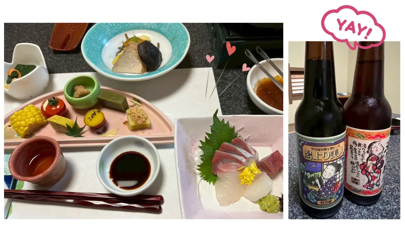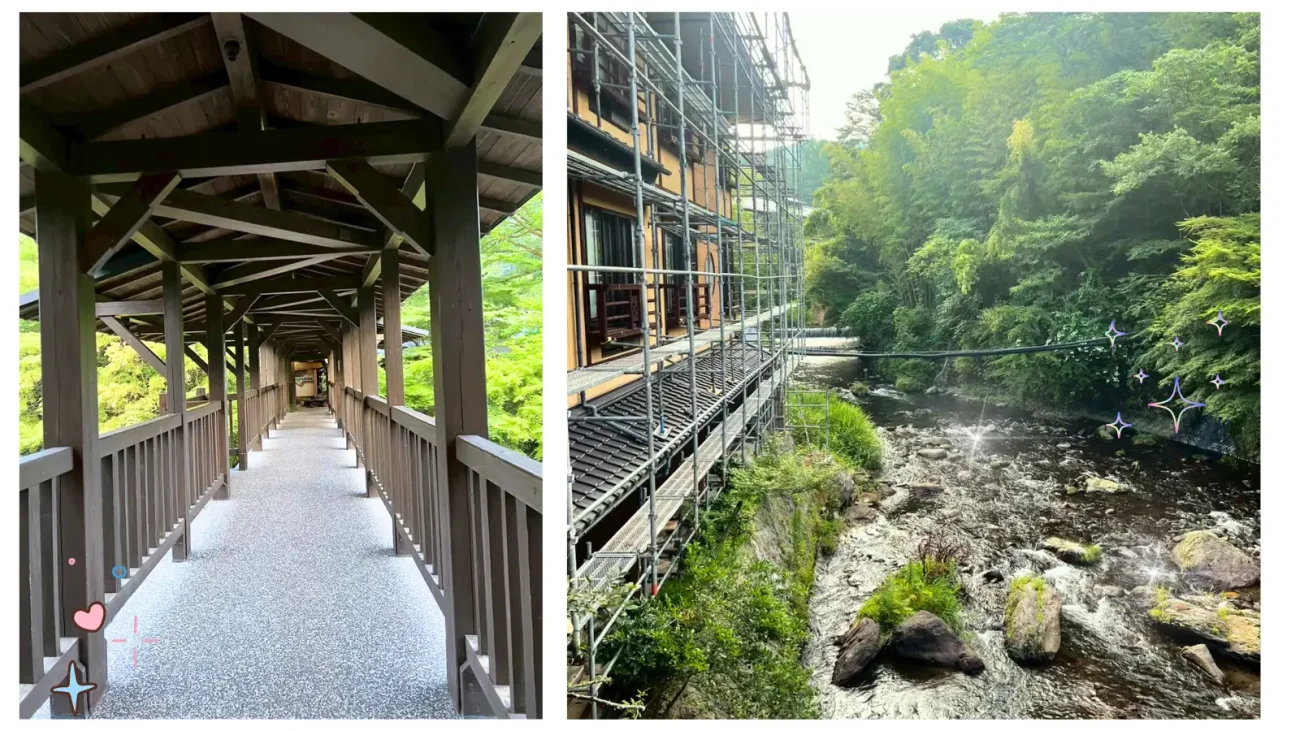 2日目は黒川温泉のやまびこ旅館で、心も体もじんわりほぐれる時間を過ごしました。貸切露天風呂でのんびり癒されて、翌朝はご褒美スイーツも♡