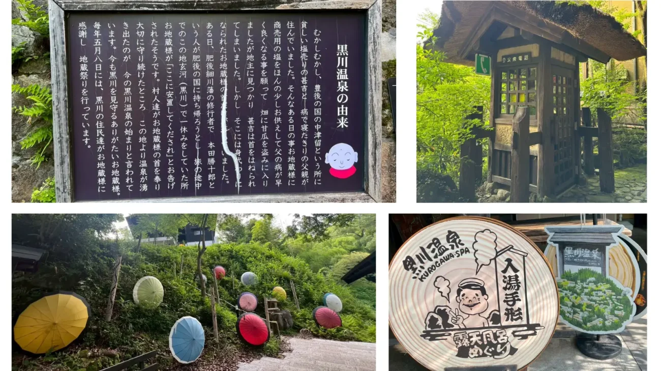 カーブが多いので、運転慣れしている人がハンドルを握るのが安心。 - 黒川温泉は散策が楽しい