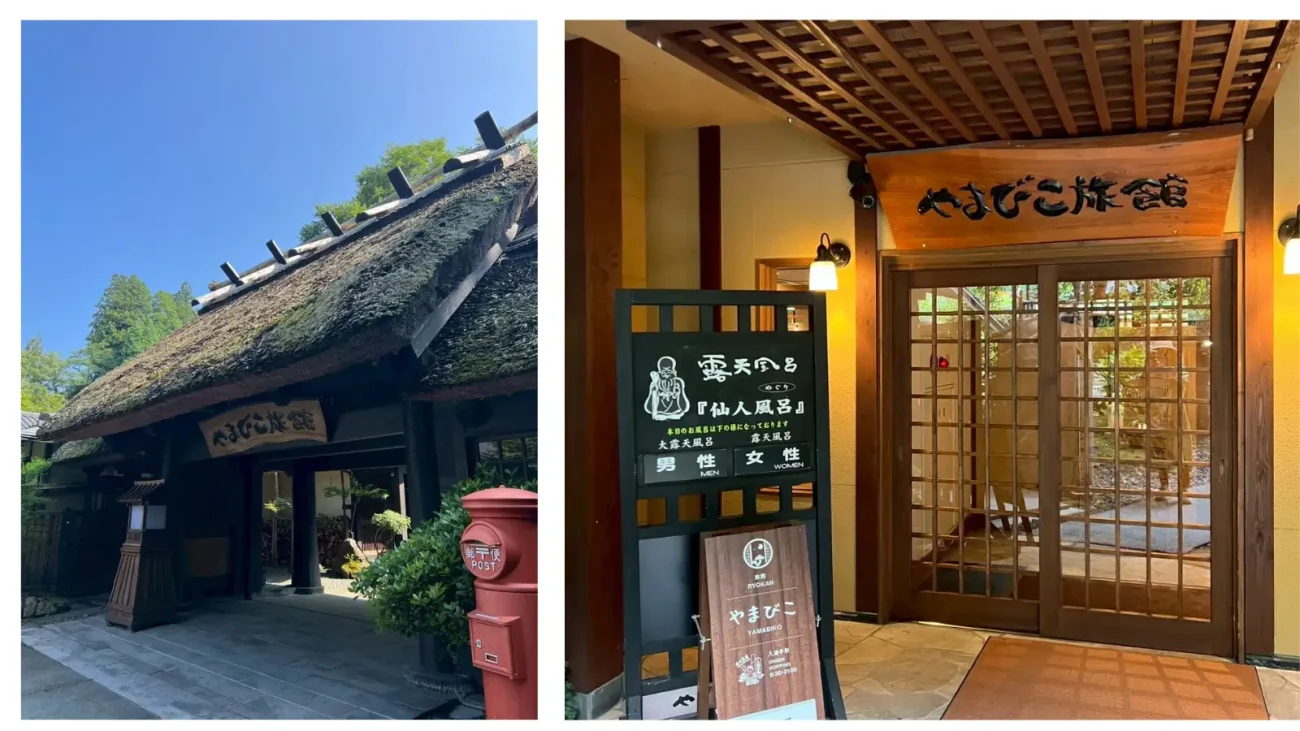 私たちは黒川温泉の中でも最も広い露天風呂がある「やまびこ旅館」に宿泊しました。